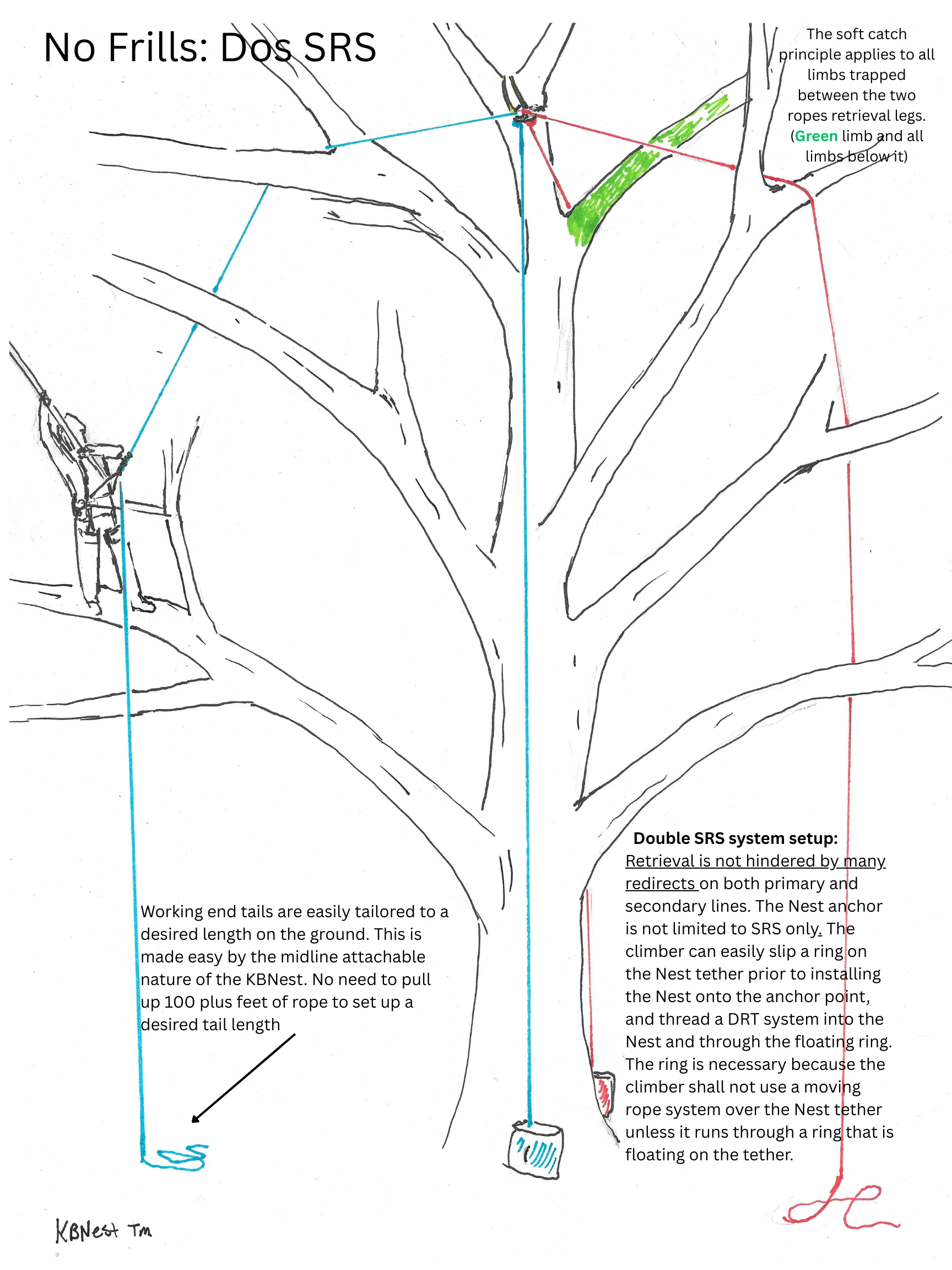 The KBNest is a Midline Attachable SRS Canopy Anchor, capable of anchoring up to three independent climbing lines, with all lines retrievable from the ground without pulling any hardware through the tie in point (TIP).